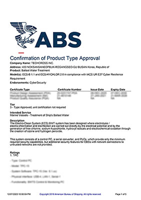 approvals from KR, BV, ABS, CCS, and NK Official validation of technological completeness and cyber security
