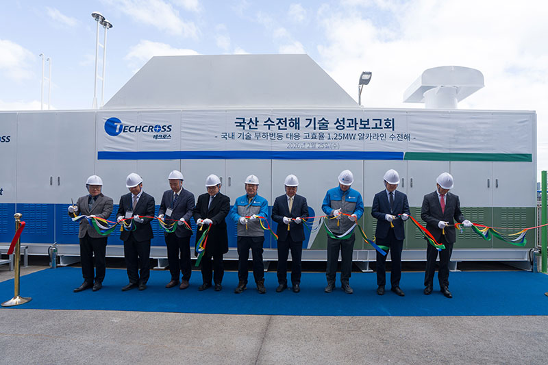 지난 2월 25일 테크로스 부산공장 부지에 구축한 1.25MW 알카라인 수전해 시스템 테스트 시설의 본격 가동에 앞서 “국산